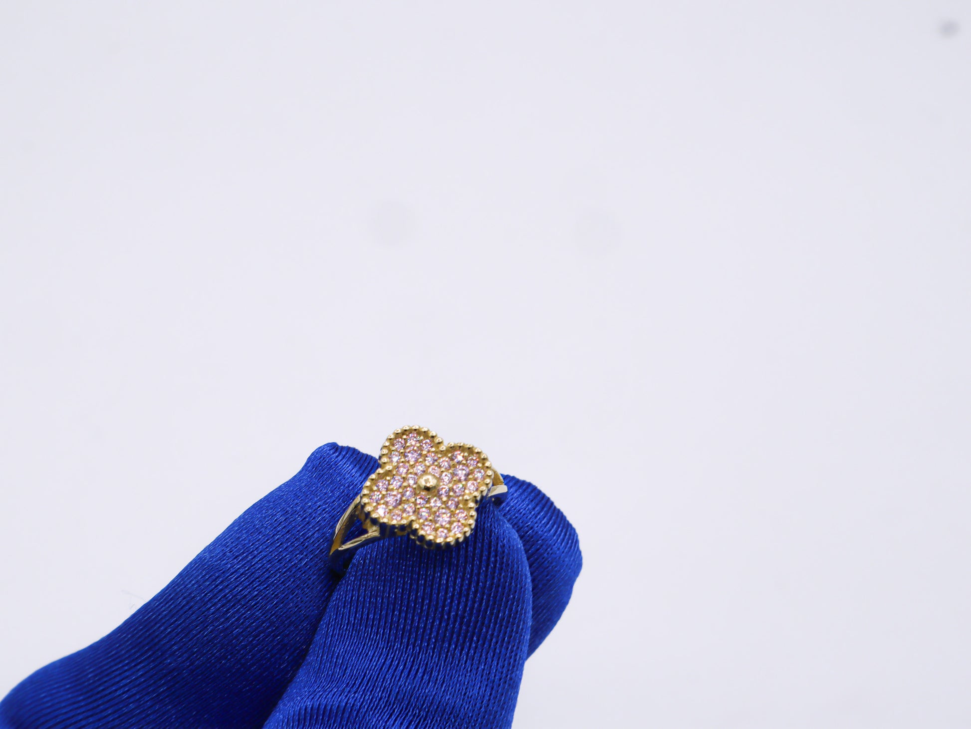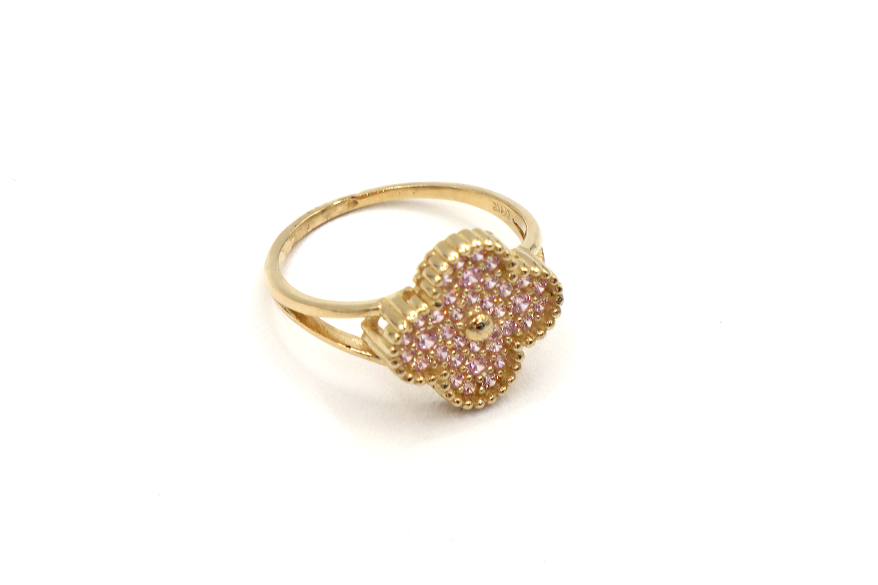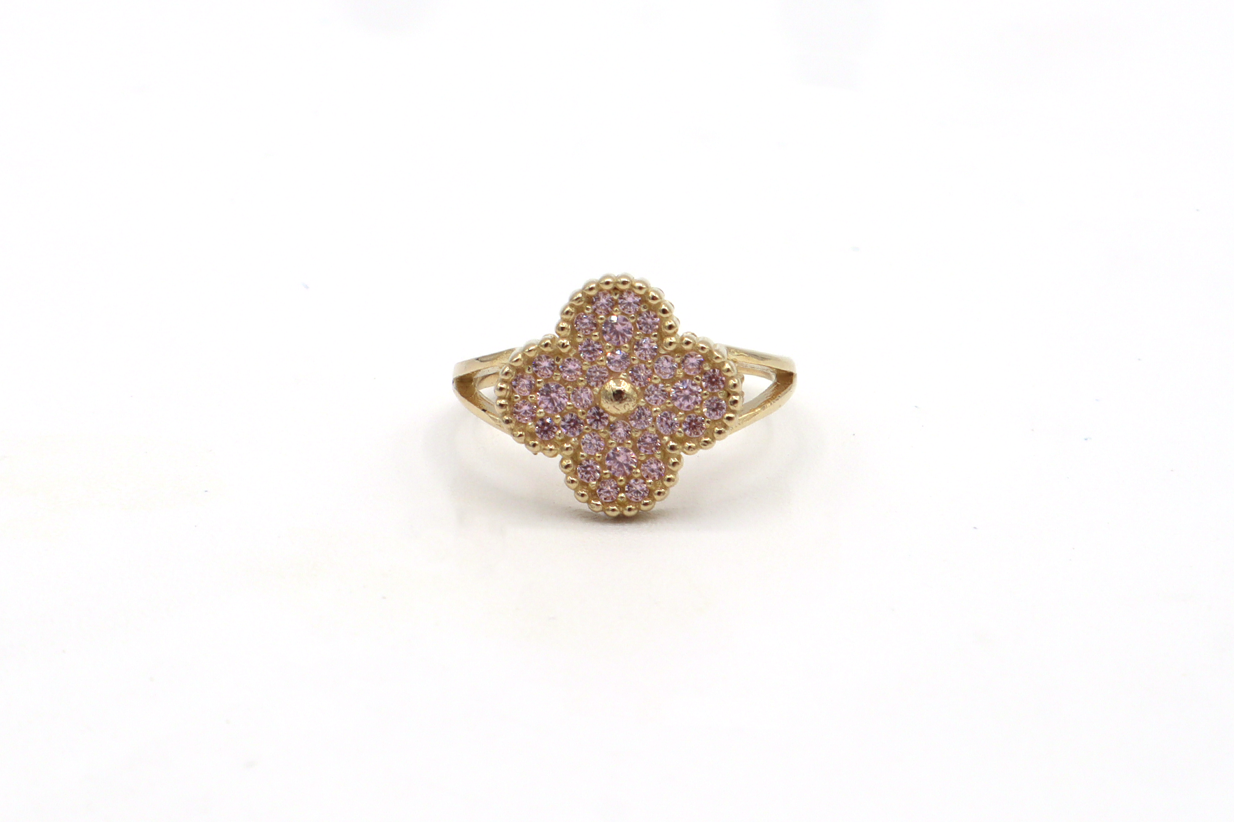 Four Leaf Lucky Clover CZ Women's Ring -10K yellow Gold-CZ Cubic Zirconia Pink White | STF DIAMONDS JEWELRY