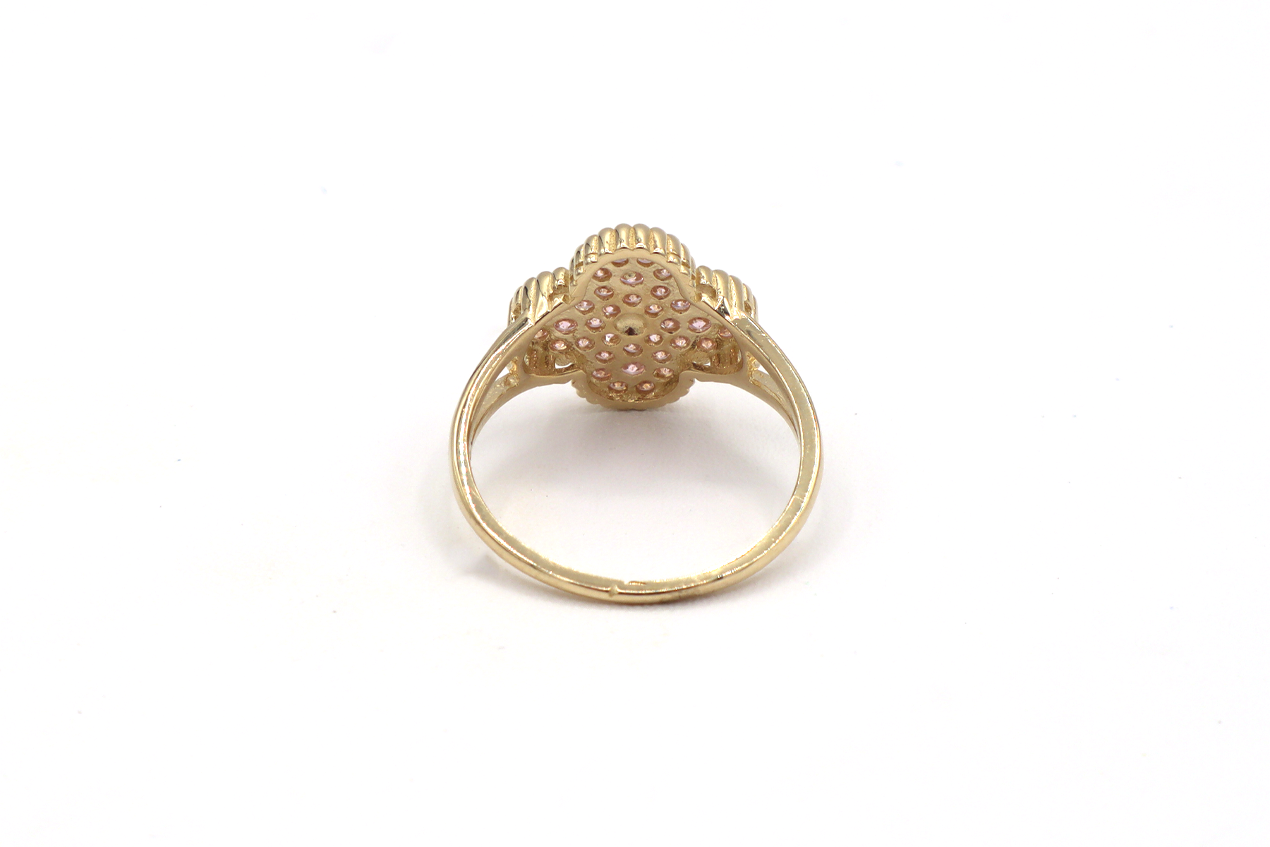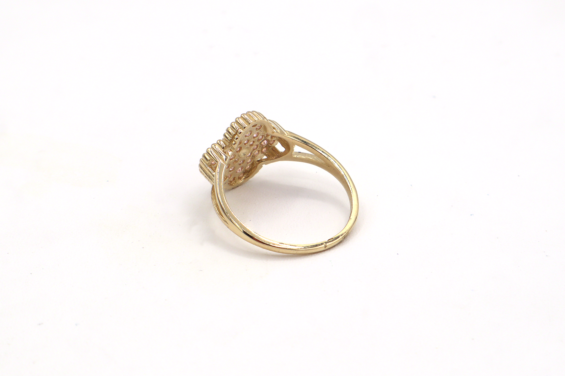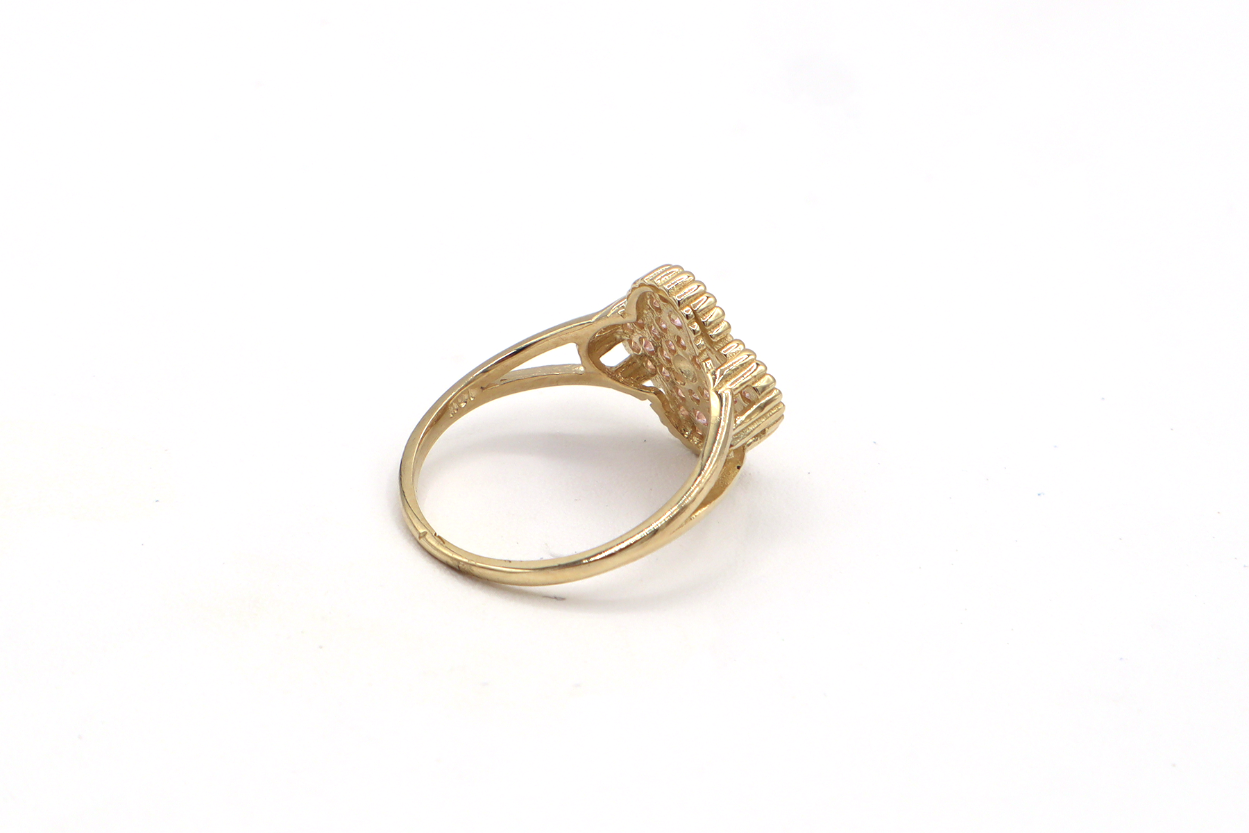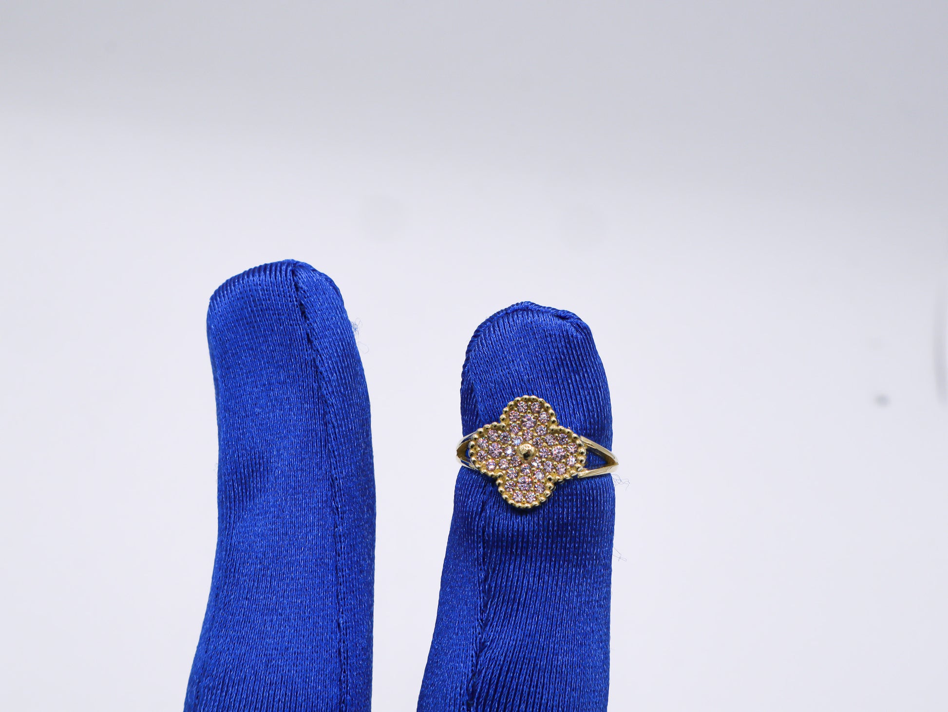 Four Leaf Lucky Clover CZ Women's Ring -10K yellow Gold-CZ Cubic Zirconia Pink White | STF DIAMONDS JEWELRY