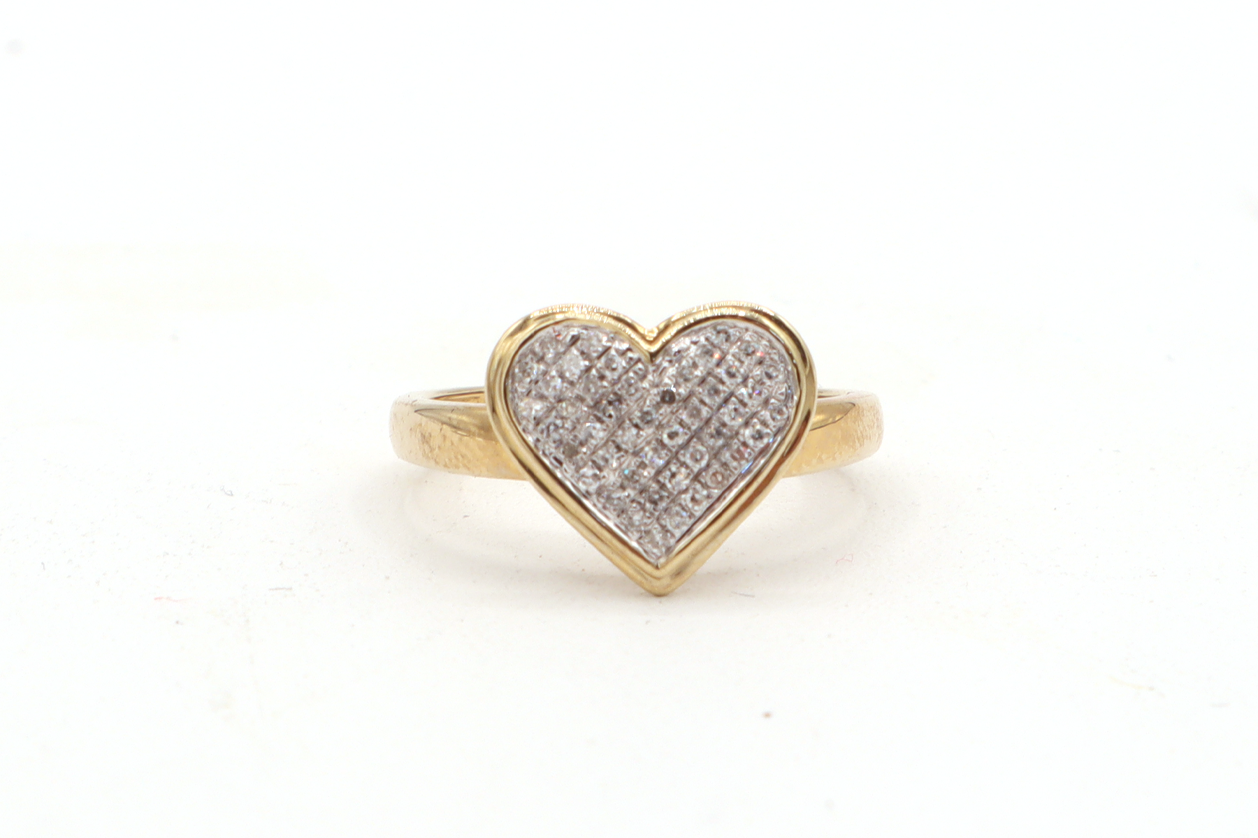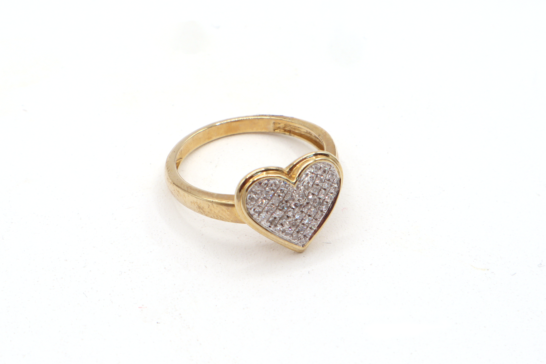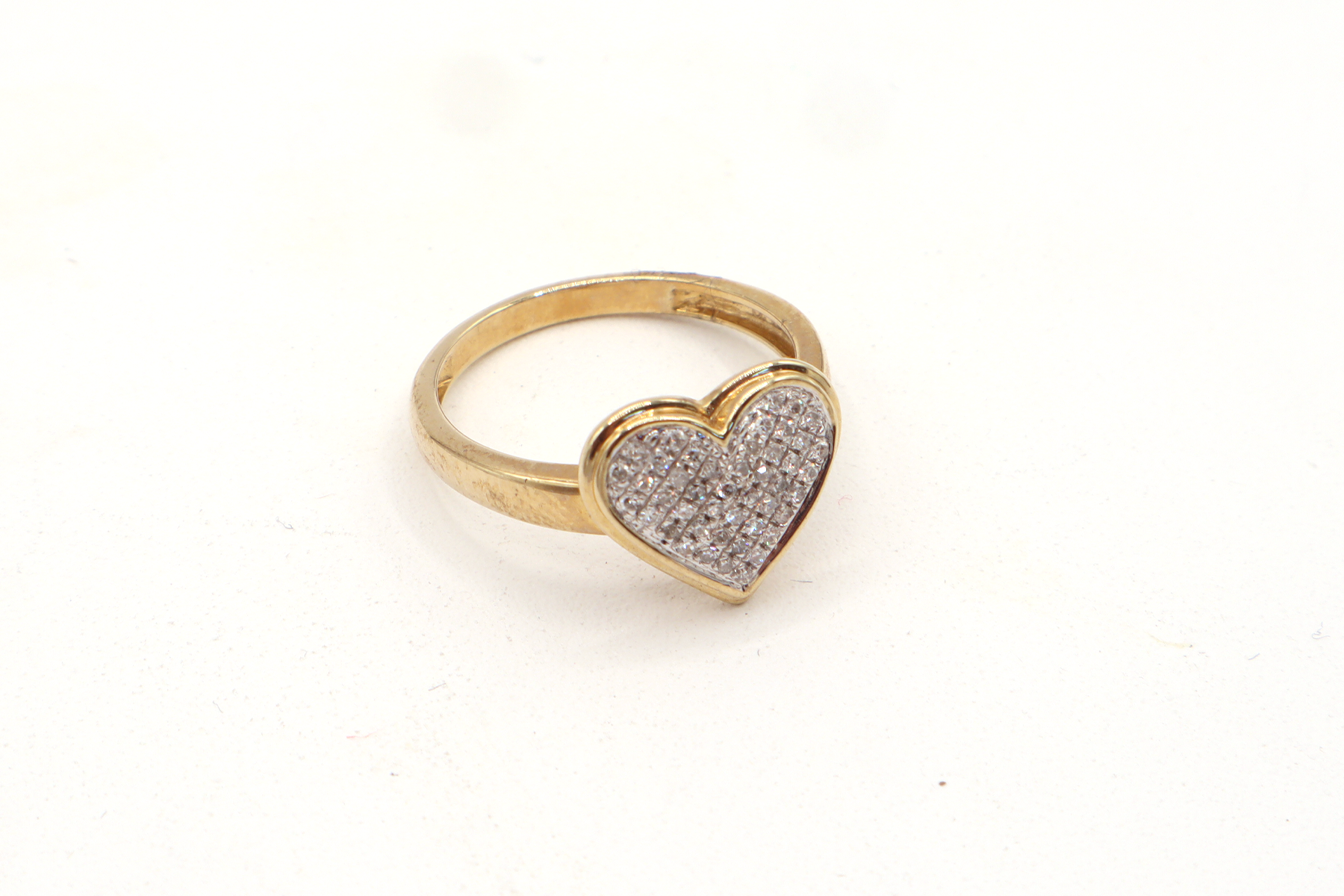 Real Natural Diamond Heart Shape Ring – 10K Real Yellow Gold STF DIAMONDS